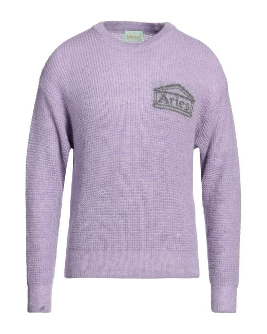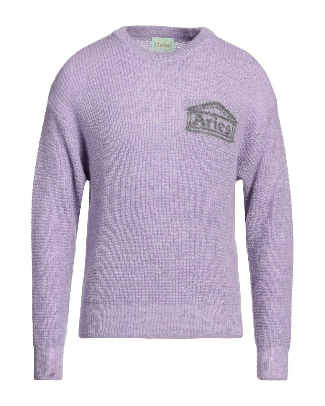 ARIES. knitted, lightweight knit, brand logo, plain colour with print, crewneck, long sleeves, hand wash or dry clean, do not bleach, do not tumble dry. 40% Acrylic, 30% Mohair wool, 30% Polyamide.