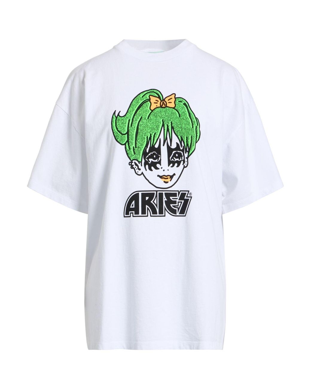 ARIES. printed t-shirt, jersey, plain colour with print, brand logo, crewneck, short sleeves, machine wash, do not bleach, do not tumble dry. 100% Cotton.