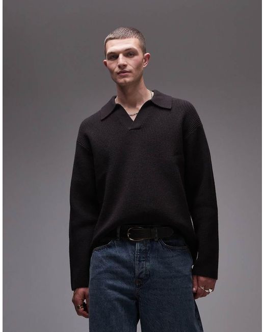 Knitted Wool Zip Polo Shirt - Black