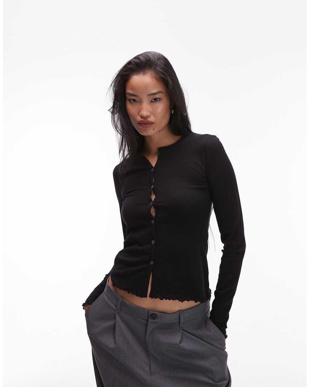 Jumpers & Cardigans by Arket Textured finish Round neck Button placket Long sleeves Slim fit. Polyester. Colour: black