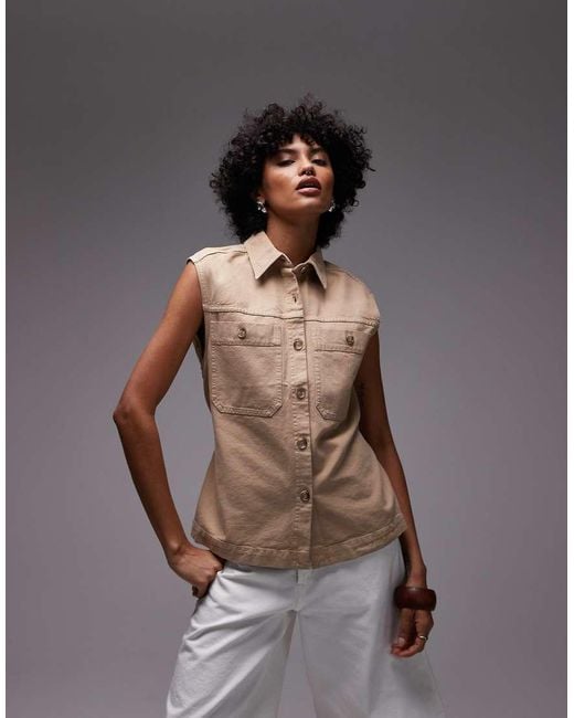 Tops by Arket Spread collar Button placket Sleeveless style Chest pockets Tie waist Oversized fit Colour: brown