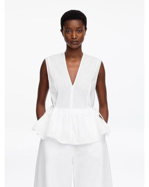 A light and airy piece, this cotton voile top features pintuck detailing at the chest, side drawstrings for a fitted silhouette, and a lace trim at the hem. Colour: white