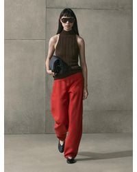 Go to YOOXTwill, no appliqués, solid colour, high waisted, straight leg, regular fit, zipper closure, 1 button, multipockets, tailored. 55% Viscose, 45% Linen. Colour: pink