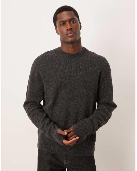 Men's Grey Wool Rich Crew Neck Ribbed Jumper With Wrist Gaiters And Thumb Holes