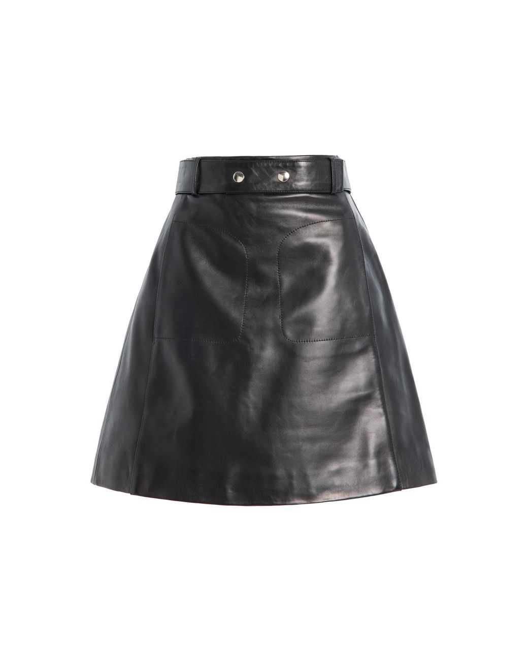 As a modern leather house; ARMA creates refined classics designed to last a lifetime. Through modern heritage and quality craftsmanship; ARMA delivers wardrobe essentials that transcend trends but are never boring.'Bessie' is a biker-inspired mini skirt made from silky lambskin with a belted waist. Colour: black