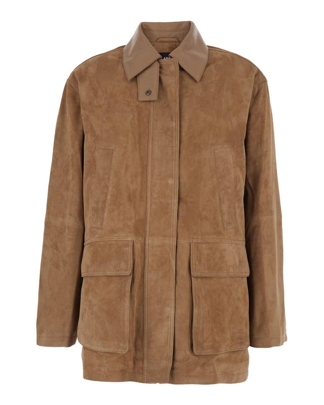 Women's Brown 'Kaylee' Jacket With Button-Up Collar And Front Patch Pocke