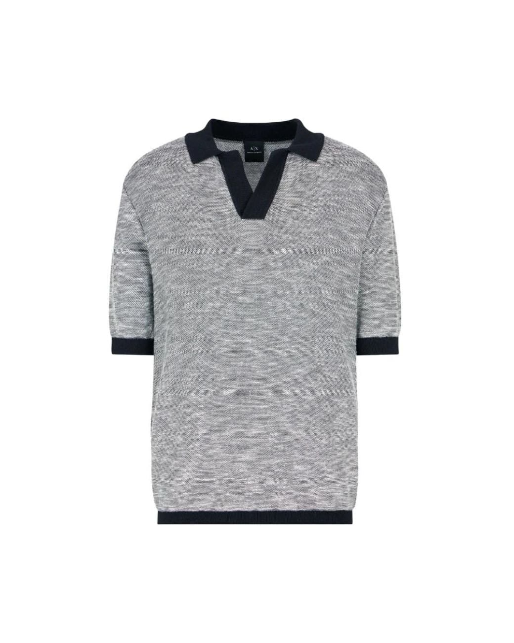 Elevate your casual style with this Armani Exchange men's short sleeve polo shirt in blue and white. Made from pure cotton jacquard, it features a V-neck and contrasting details, offering a regular fit. Colour: grey