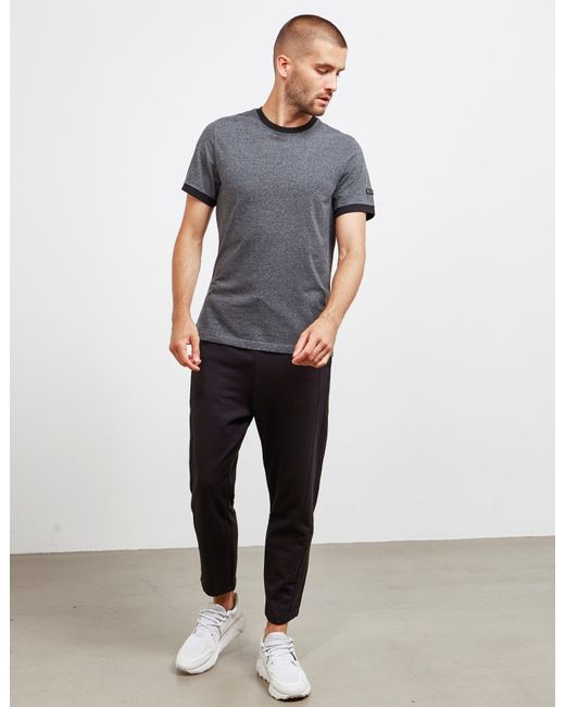 Launched in 1991, armani exchange aims to be a more accessible branch of the armani brand, allowing you to get the same style and feel with a nod towards street-chic style and modern dance music. This shows in these men's stitch joggers which come in a black colourway and a slim fit. Details; black colourway, slim fit, tonal stitching, draw tie waist, two side pockets, white stitch line to the side leg and branding to the back to complete. Model is 6'2" with and wears a medium. Colour: black
