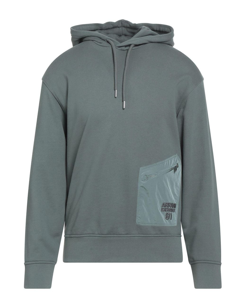 ARMANI EXCHANGE. french terry, shell, plain colour, brand logo, hooded, long sleeves, zip pocket, machine wash, do not bleach, do not tumble dry. 100% Cotton, Polyamide. Colour: grey