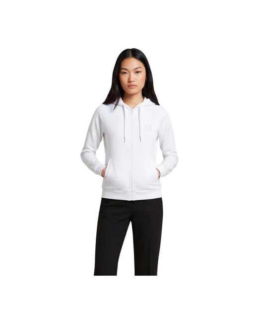 Armani Exchange Zip-Up Hooded Sweatshirt with Front Pockets combines a full zip fastening and a hood for versatile layering and everyday practicality. Key attributes: White | Polyester | Zip fastening | Front pockets | Hood | Round neckline | Long sleeves | Zip-through design | Composition & care: Elastane | Polyester | Viscose | Machine wash at 30°. Colour: white