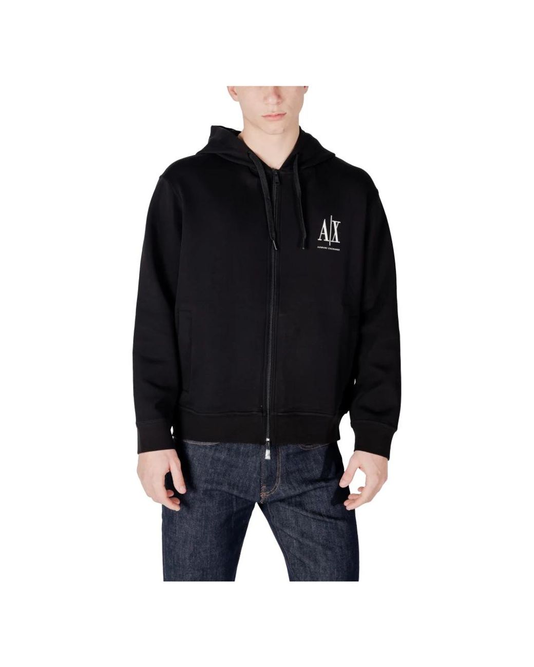 Elevate your casual style with this men's Capsulate sweatshirt from Armani Exchange. Crafted from a blend of 79% cotton, 17% polyester, and 4% elastane/lycra, this zip-through sweatshirt is a versatile addition to your wardrobe. Colour: black