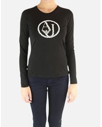 Armani Women's Black Ladies Stacked Logo T-Shirt Cotton