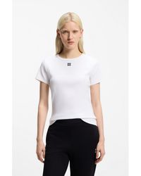 Go to Get The Label100% Cotton. Design: Stacked Logo. Neckline: Crew Neck. Sleeve-Type: Short-Sleeved. Fit: Regular. 6 UK: 30 in. 8 UK: 32 in. 10 UK: 33 in. Colour: black