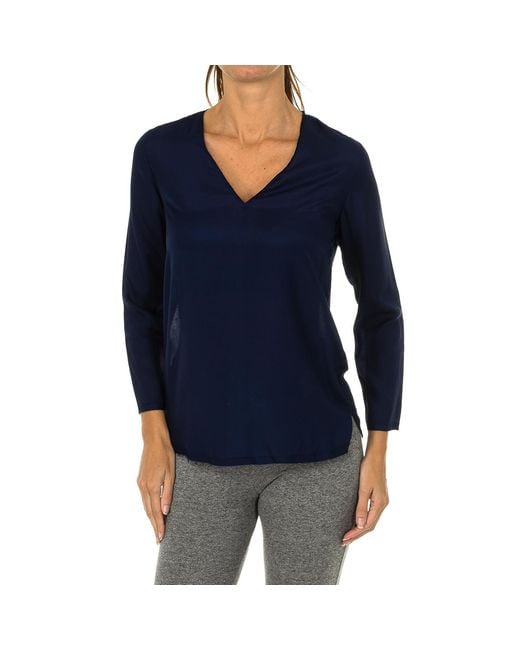 Women's Blue Long-Sleeved V-Neck Blouse 3Y5H53-5Nzsz