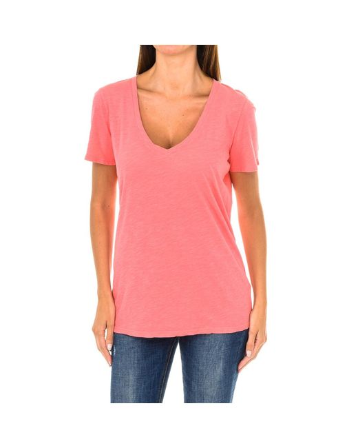 Women's Red Short-Sleeved V-Neck T-Shirt 3Y5T45-5Jzmz