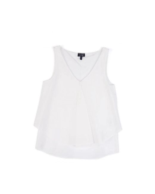 Elevate your wardrobe with this Armani Jeans Women's Sleeveless Top in white. Made from a luxurious silk-cotton blend, this versatile piece features a layered design with a split back, perfect for day to night wear. Care: Hand Wash. Colour: white