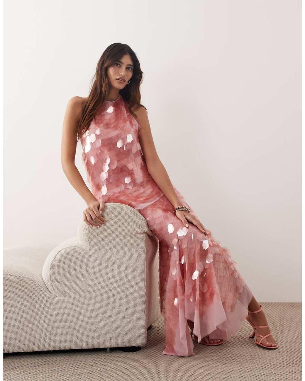 Skirts by ARRANGE Sequin embellishment Mid rise Hanky hem Kick split Regular fit. Colour: pink