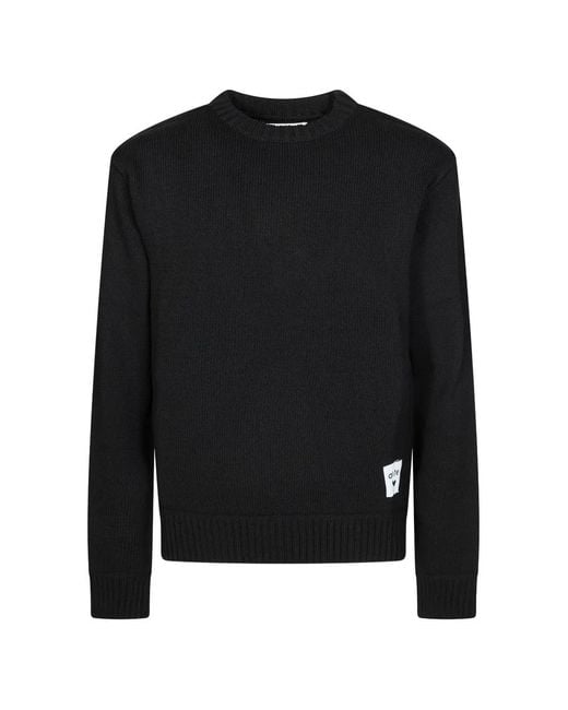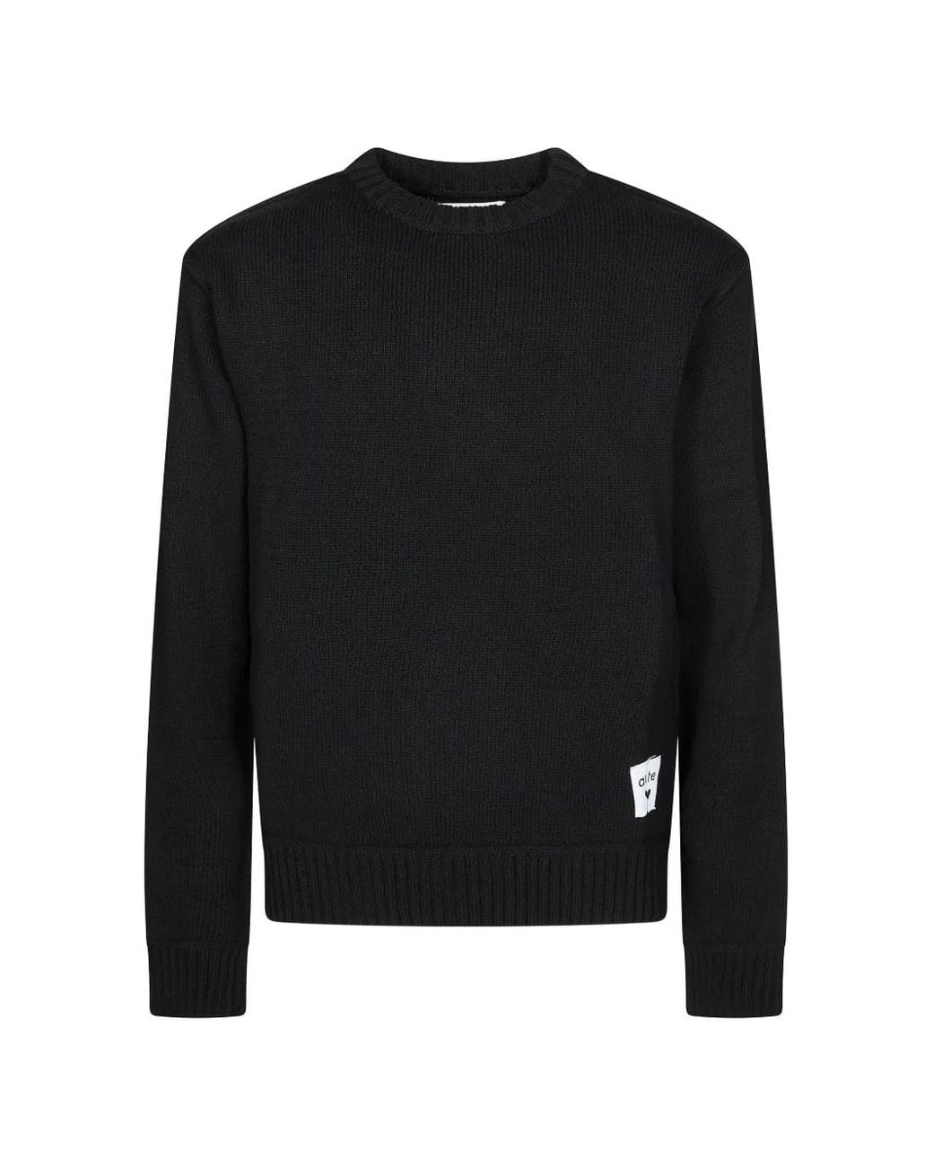Black ribbed knit crew neck long sleeves label detail Size: S. Gender: Male. Material:Fabric. Colour: black