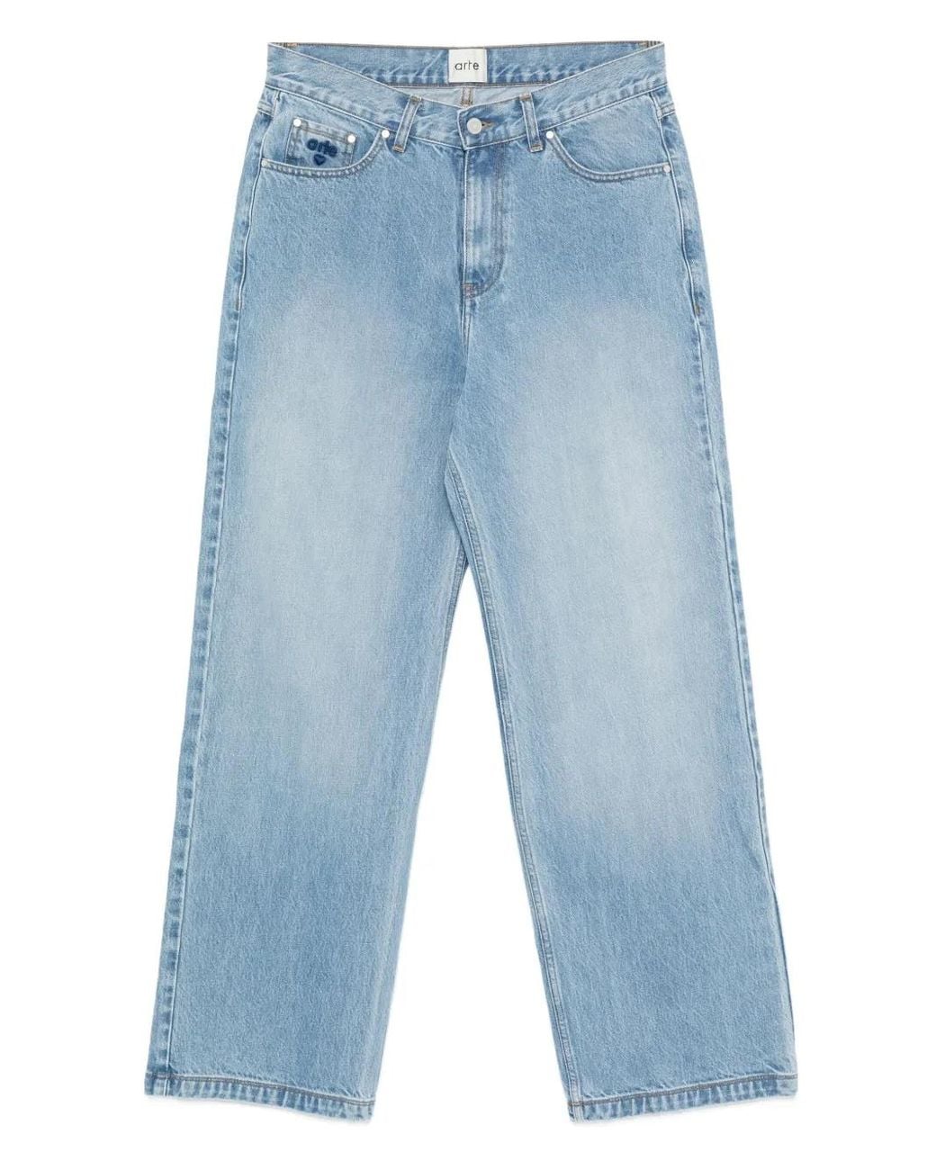 Blue embroidered logo five-pocket button fastening cotton belt loops Size: 36. Gender: Male. Material:Cotton. Colour: blue