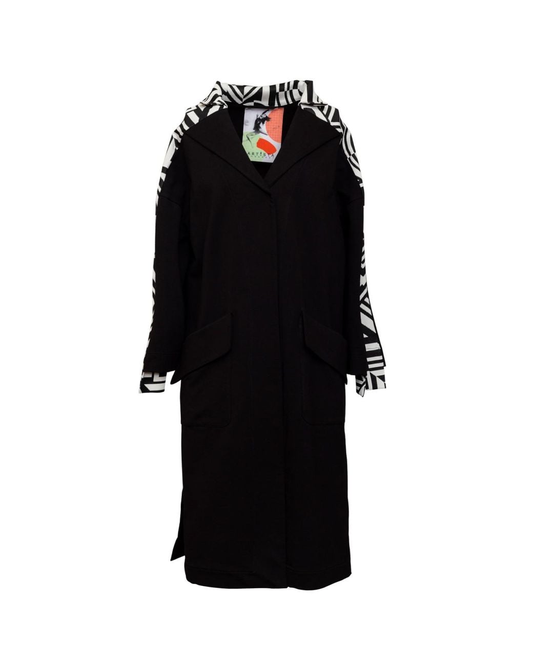 This soft cotton coat is the perfect throw on that works over everything. It has two flying pockets at the sides and a significant graphic detail. 95% Cotton 5% lycra machine wash 30 degrees iron at middle heat Colour: black