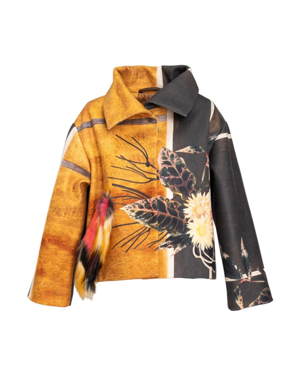 Introducing the Hailey Cropped Coat - the perfect combination of chic elegance and comfort. This one size piece features a front press button closure and a front pocket for added convenience. The colourful faux-fur detail on one pocket adds a touch of playfulness to this sophisticated design. Complete with long sleeves and a collar, this coat is sure to become a staple in your wardrobe! 95% PE 5% EA Dry clean only Do not Iron Do not tumble dry Colour: multicolour