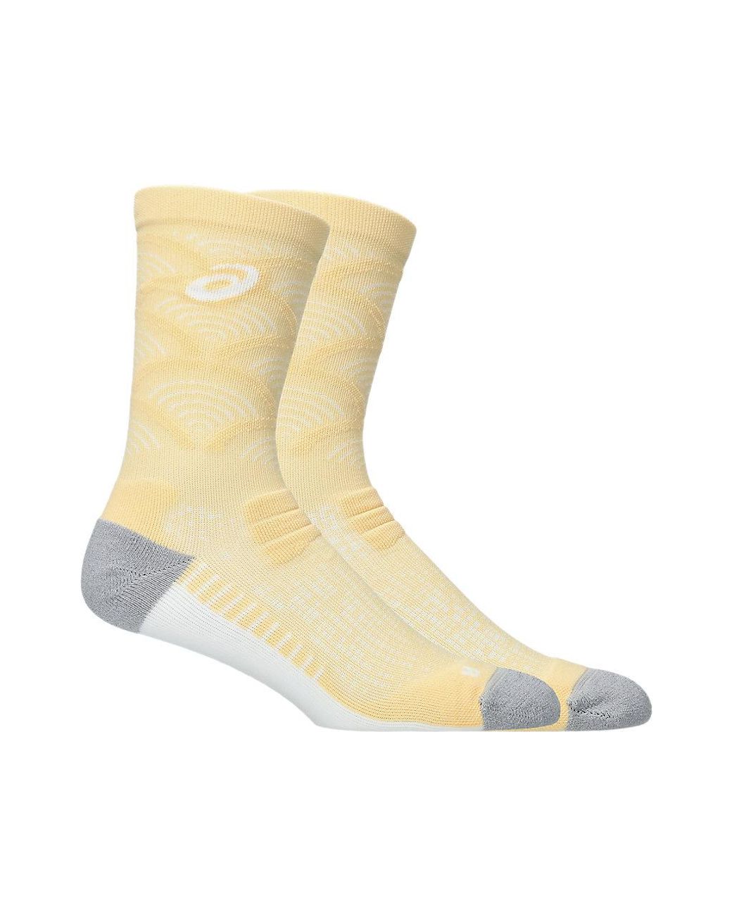 Specifically designed for runners, these advanced crew socks are created to provide cushioning and keep you comfortable throughout your run. To help ensure a great fit, right and left feet are designed uniquely. Meanwhile, the dynamic top is soft and fast drying, while mesh knit fabric helps provide a soft feel and advanced ventilation. The sock also features a polypropylene technology on the heel and toe for improved comfort and abrasion control (moisture and heat control). It's also complemented with a knitted graphic print that is inspired by traditional japanese wave and water illustrations.