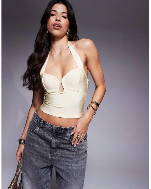Tops by ASOS DESIGN Halterneck style Fixed straps Sleeveless style Cropped length Bodycon fit Colour: blue