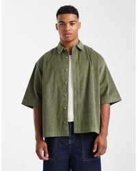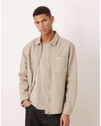 Shirts by ASOS DESIGN Top-half options Spread collar Concealed button placket Long sleeves Chest pockets Logo patch Boxy fit Colour: grey