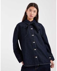 Tops by ASOS DESIGN Stripe design Point collar Button placket Long sleeves Tie detail Boxy fit. Cotton/Cotton/Polyester. Colour: blue