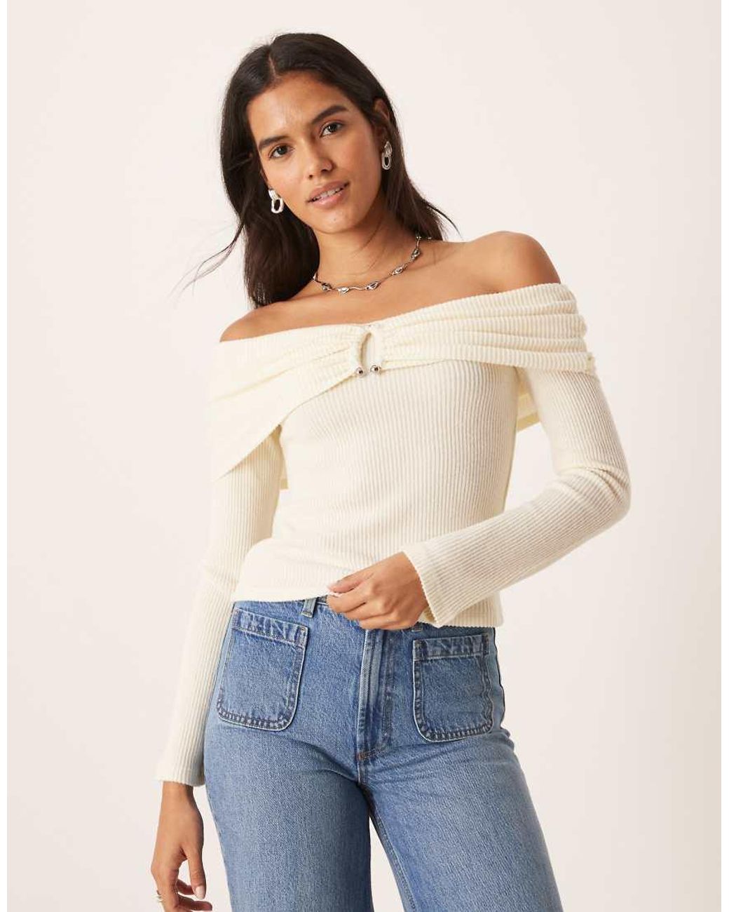 Supersoft Brushed Rib Hardware Detail Off Shoulder Jumper