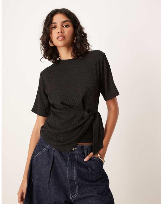 Tops by ASOS DESIGN Textured finish Crew neck Short sleeves Drape detail Regular fit. Cotton. Colour: black