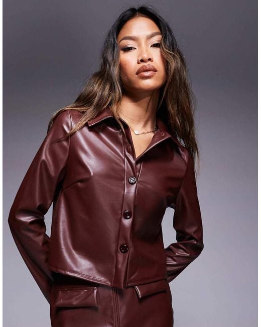Tops by ASOS DESIGN Part of a co-ord set Skirt sold separately Plain design Spread collar Button placket Long sleeves Cropped length Regular fit. Polyester/Elastane/Polyamide/Polyester/Elastane. Colour: brown