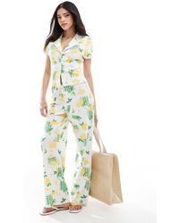 Trousers & Leggings by ASOS DESIGN Floral design Mid rise Elasticated drawstring waist Wide leg. Colour: pink