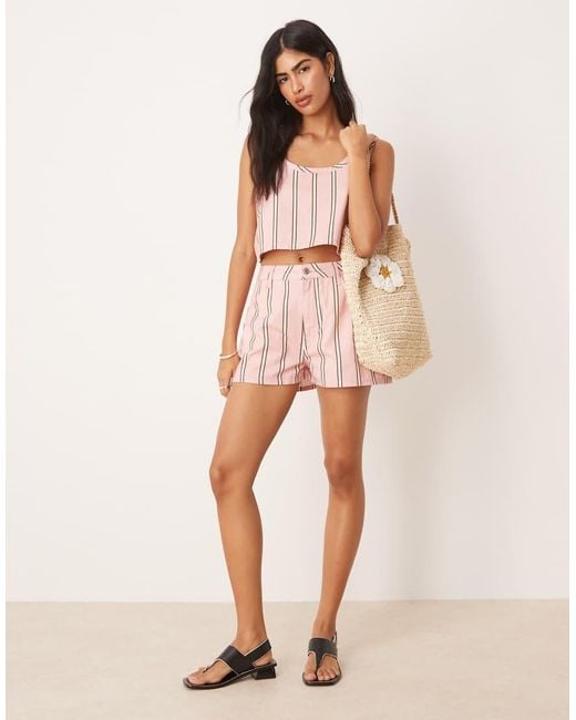 Shorts by ASOS DESIGN Stripe design Mid rise Belt loops Concealed fly Functional pockets Regular fit. Cotton/Elastane. Colour: natural