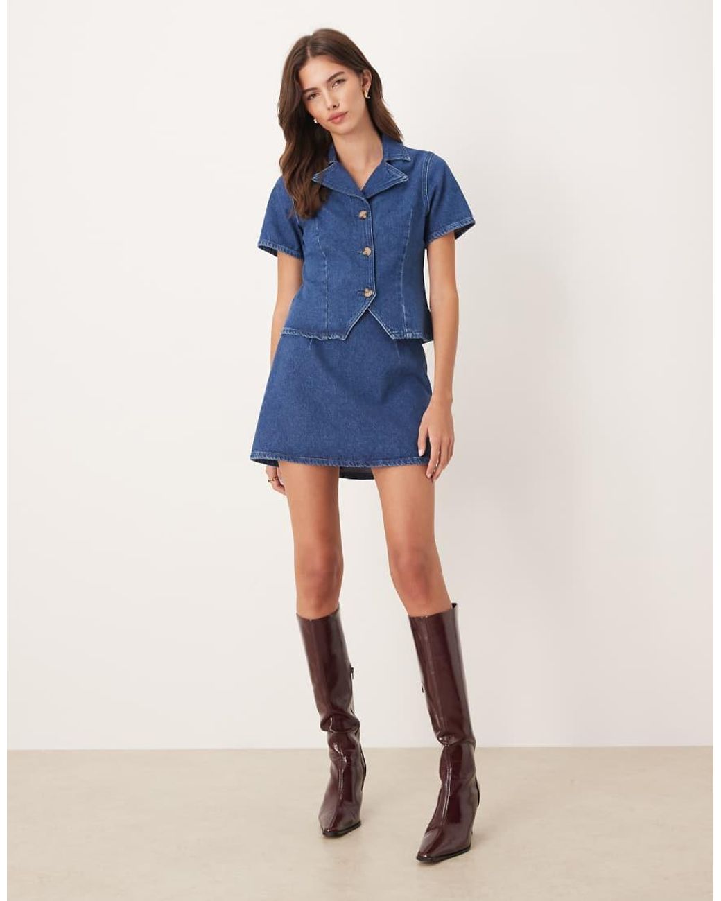 Women's Blue Denim Mini Skirt Co-ord