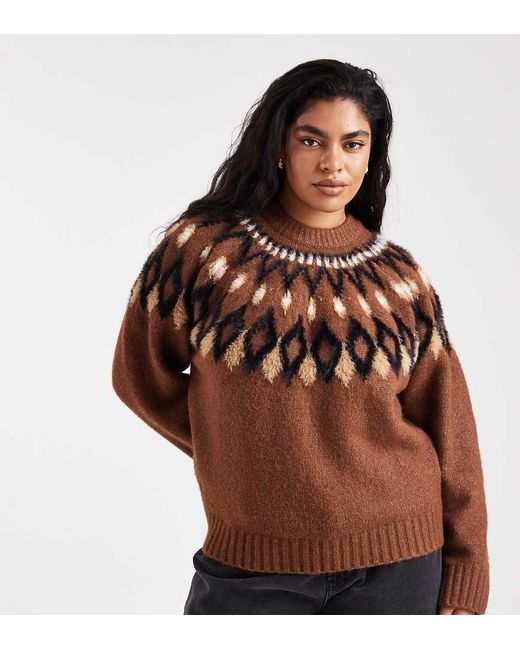 Women's Brown Asos Design Curve Eyelash Yoke Placement Jumper