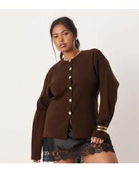 - Asos Design Curve Knitted Structured Crew Neck Cardigan With Gold Buttons