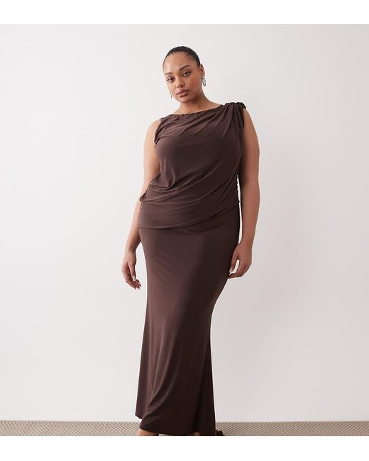 - Asos Design Curve Slinky Asymmetric Drape Maxi Dress With Cowl Back