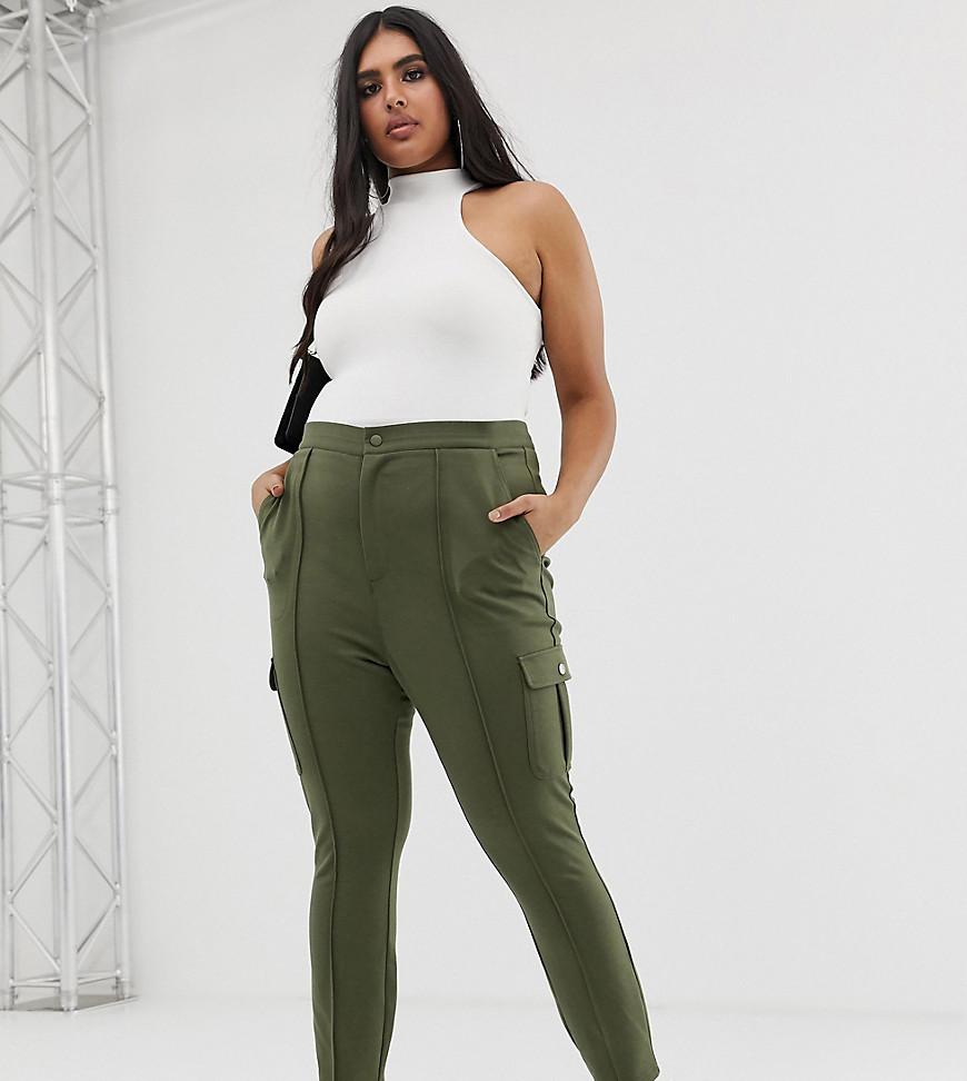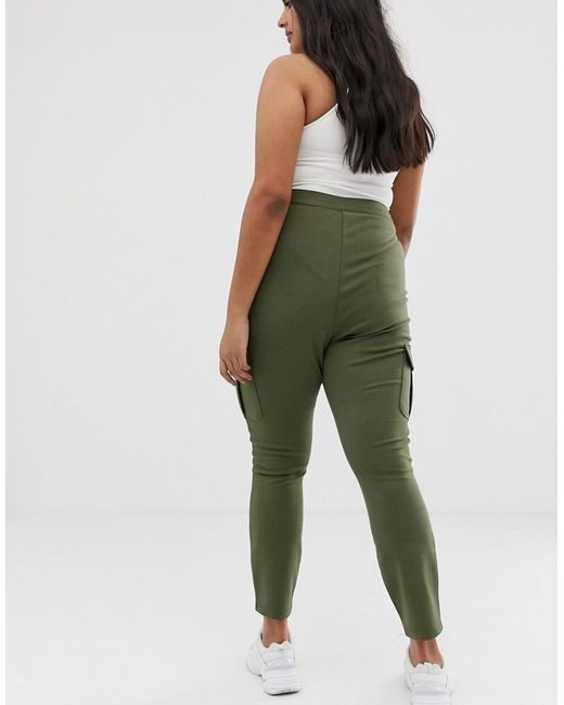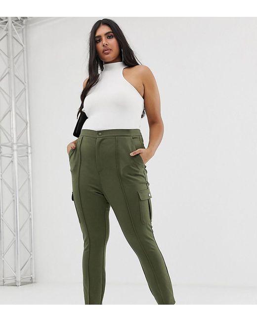 Women's Green Asos Design Curve Slim Ponte Utility Trouser With Contrast Stitch