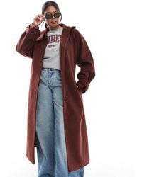 Coats & Jackets by ASOS Petite Funnel neck Button placket Belted waist Side pockets Longline cut Regular fit Colour: red