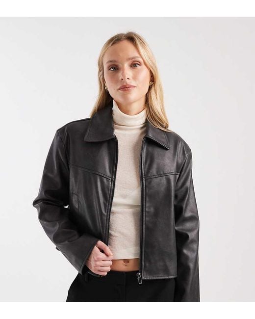 - Asos Design Petite Leather Look Top Collar Jacket