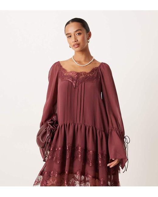 - Asos Design Petite Long Sleeve Sweetheart Neckline Mini Dress