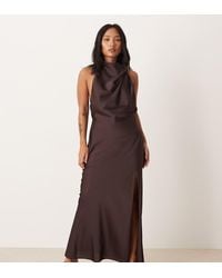 - Asos Design Petite Satin Cowl Back Maxi Dress With Buckle Strap Detail
