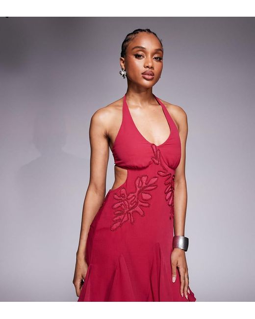 - Asos Design Tall Embroidered Halter Mini Dress With Godets