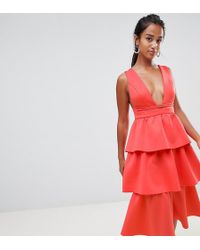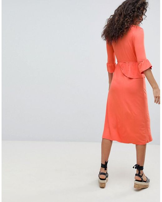 Tall dress by ASOS DESIGN, Plunge neck, Cross-over front, That's a wrap, Tie waist, Ruffle cuffs and waistband, Midi length, Regular fit - true to size. Giving you the confidence to express your individuality, ASOS DESIGN interprets major trends, adding a unique ASOS spin from our London design team. All the denim, dresses, jackets and pieces you need - including our fit ranges ASOS Curve, Tall, Petite and Maternity and our ASOS DESIGN Makeup collection - to invent a style that's all yours, then switch it up again tomorrow, making every day, night and everything in-between as extraordinary as you are. Your life is eclectic and unexpected and, now, so is your wardrobe. Denim/ elastane/ jersey/ viscose. Colour: pink
