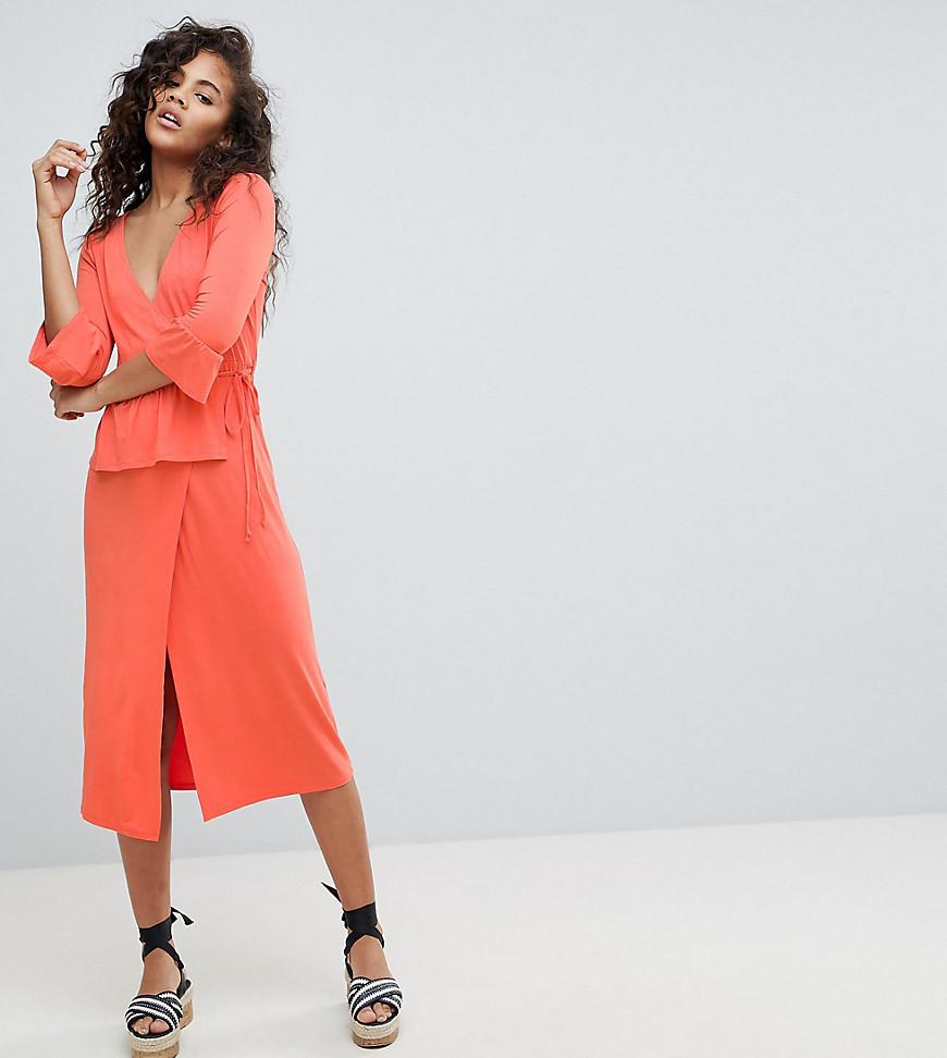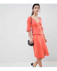Women's Pink Asos Design Tall Midi Wrap Dress