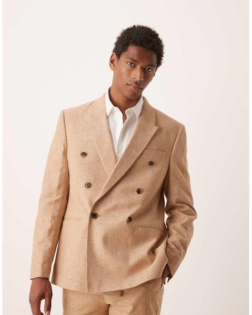 - Double Breasted Linen Blend Regular Suit Jacket