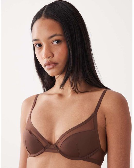 Lingerie & Nightwear by ASOS DESIGN Underwire support Adjustable straps Mesh panels Hook-and-eye fastening. Colour: brown