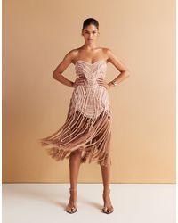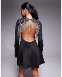 Dress by ASOS DESIGN Introduce it to your friends Plunge neck Notch lapels Concealed press-stud fastening Cut-out back Fringe details Slim fit Cut close to the body. Colour: white