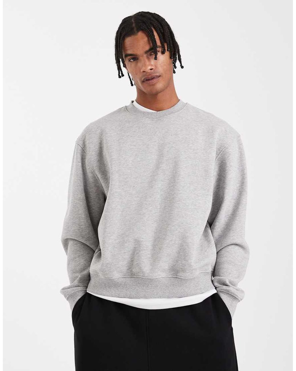 Hoodies & Sweatshirts by ASOS DESIGN Plain design Crew neck Drop shoulders Ribbed trims Boxy cut Oversized fit. Colour: grey